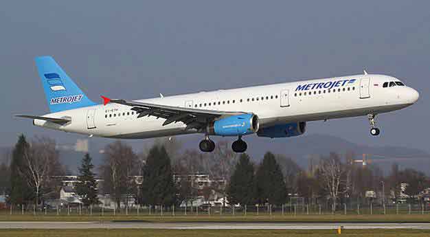 2 ноября 2015 года пресс-секретарь Metrojet Александр Смирнов исключил техническую неисправность и ошибку пилота в качестве причин катастрофы и назвал причиной аварии «внешнее воздействие». Он подчеркнул, что самолет был готов к полёту на 100% и что его экипаж был «весьма опытным». Он также показал сертификаты, полученные авиакомпанией в начале 2015 года. Позже он добавил, что последствия касания хвостом полосы в Каире были полностью устранены, и что двигатель самолета был проверен 26 октября, за пять дней до аварии. В пользу версии «внешнего воздействия» говорит тот факт, что хвостовая часть самолёта отделилась от фюзеляжа и несёт следы пожара. Это указывает на вероятный взрыв на борту самолёта.