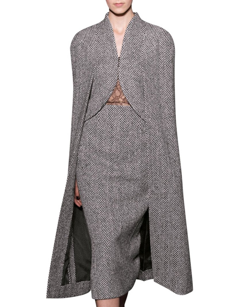 Теперь переходим к формам и ключевым силуэтам, которые задает Юпитер в Козероге. Юпитер — планета «большого счастья» и щедро распространяет свое влияние на все, с чем он символически связан. В астрологии моды область воздействия Юпитера получила название «зона щедрости». Она показывает, какая часть тела человека будет служить источником вдохновения для дизайнеров в текущем году. Юпитер в Козероге: позвоночник, локти, колени (проекция знака Козерога на тело человека). Фактически это внешний контур, который подчеркивается одеждой. Как именно это подчеркивать — это задача дизайнеров текущего периода. В арсенале моды есть немало приемов, которые визуально меняют восприятие фигуры человека, и все в зависимости от того, как «звезды стоят». В данном случае фигура в такой модной одежде выглядит более массивной (щедрое влияние Юпитера).