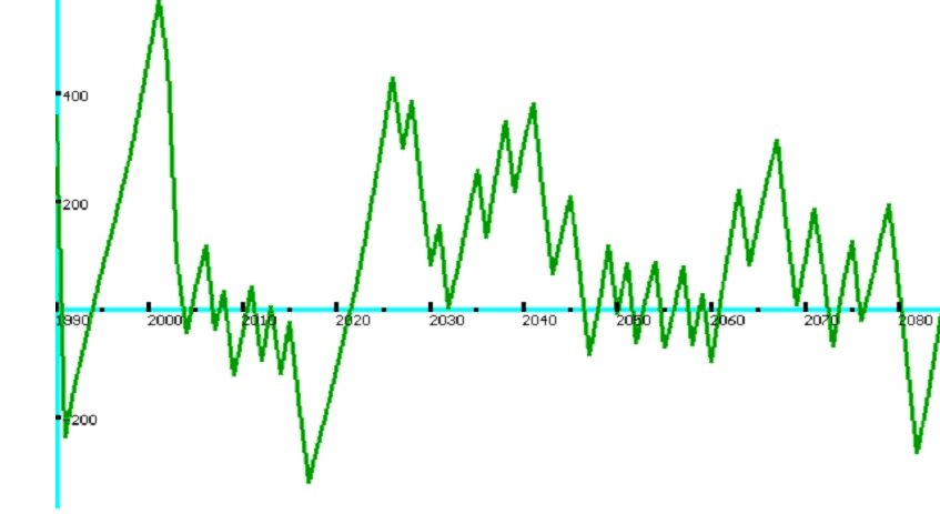 Аналогичный график на период 1990-2090 годы приведен на рис. 2.