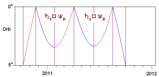 Рис. 2. Динамика квадрата транзитного Сатурна к Нептуну России в 2011–2012 гг.