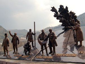 Сам же памятник, по словам В. Бухаева, символизирует, что природа работает на благо человека. “Это монумент строителям — покорителям Енисея, волна обозначает стихию. Пробегающая посередине монумента трещина-разлом — это и уходящая вдаль дорога, и горное ущелье, и русло покоренной энергетиками реки”. Местные же жители сразу усмотрели в нем дурное предзнаменование. А после аварии в Хакассии вообще стали говорить, что памятник “напророчил” трагедию. Уж больно все похоже: работающих людей сверху накрывает то ли волной, то ли взрывом...