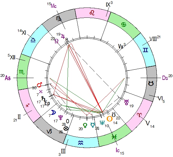 Кверент представляется в карте весьма занимательной фигурой: Марс —управитель Асц — располагается в знаке своего владения в 1 Доме. Такое положение похоже на утверждение «кверент в чьих-либо советах по данному вопросу не нуждается и в состоянии решить проблему».