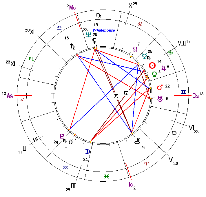 Из-за соединения астероида Whitehouse в 18°57 Девы с Черной Луной в ( доме дальних полетов, вероятно, свою лепту в различные неудачи американской космонавтики внесла и руководство США в лице Белого Дома (астероид Whitehouse).