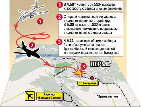 Катастрофа с пассажирским самолетом Боинг 737-500 российской авиакомпании “Аэрофлот-Норд” произошла 14 сентября 2008 года. Самолет совершал рейс SU821 из Москвы в Пермь и вылетел из аэропорта Шереметьево в 1:12 по местному времени (GMT+4).