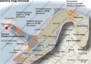 И вот пришли сообщения о том, что работа многих европейских аэропортов была парализована из-за извержения вулкана, расположенного на леднике Эйяфьяллайекюль (Eyjafjallajokull) на юге Исландии 14.04.2010 г., поднявшего над Северной Европой огромные облака вулканического пепла. По данным Европейской организации безопасности воздушного движения, пепел поднялся на высоту до 17 км.