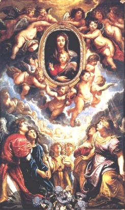 Одновременно дирекционная Луна находится на натальном соединении Урана, управителя 5 Дома детей и творчества, со Жребием Детей. Луна непосредственно связана с образом матери, с семьей и детством, с материнством, с образом Мадонны и Младенца. И во время этих дуг и в точном соответствии с ними именно в 1514-15 годах Рубенс создает сразу несколько картин на тему Марии и Младенца: одновременно сразу три картины «Святое Семейство и св. Елизавета», картину «Мария поклоняется младенцу Христу» («Мадонна молится о младенце») и «Вознесение Марии». С образом Марии, матери Христа, связана именно Луна, и ее соединение с Ураном, богом неба, можно прочитать буквально как вознесение Марии.