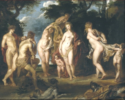 Согласно мифу три богини Гера (Юнонa), Афина (Минерва) и Афродита (Венера), обратились к Парису, сыну Прима, царя Трои, за решением спора о том, кто из них прекраснейшая. Гера обещала ему господство над Азией, Афина — победы и военную славу, Афродита — обладание прекраснейшей женщиной. Признав победительницей Афродиту (Венеру), Парис обеспечил себе ее поддержку при возвращении в Трою и похищении прекрасной Елены, жены царя Спарты Менелая, но вызвал ненависть двух других богинь, способствовавших падению Трои в войне.
