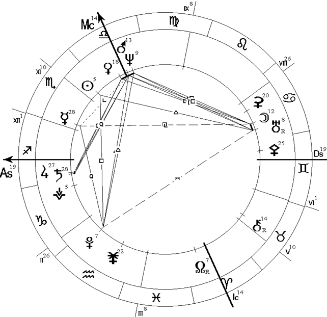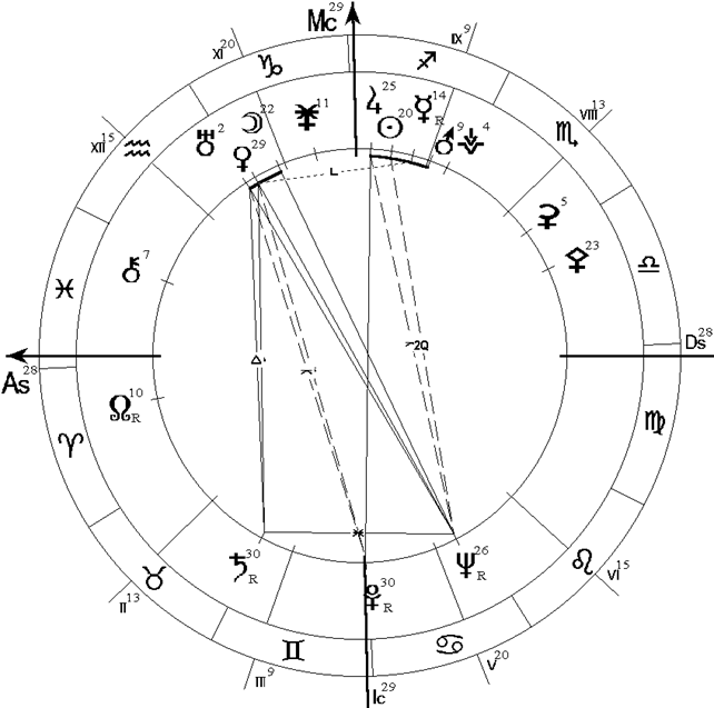Рис. 1. Гороскоп Н. Паганини, род. 27.10.1782 г., 9:54 GMT, г. Генуя, Дома Плацидуса.