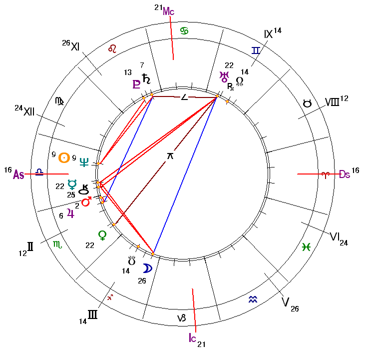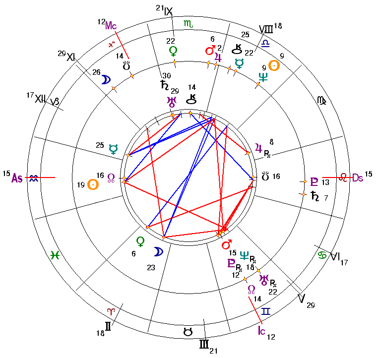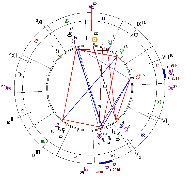 Это же подтверждается и положением Плутона Сергеева в 12°56 Льва вблизи куспида 7 Дома партнеров и явных врагов Чижевского в 14°56 Льва, поскольку Плутон призван вскрывать самые глубинные “нарывы” в жизни человека, в данном случае, в отношениях с его врагами (7 Дом).