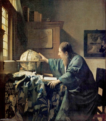 По поводу символического значения «Астронома» и «Географа»: правдоподобной выглядит гипотеза о размышлениях Вермеера об истинности научных изысканий в небесной сфере (астроном) и в земной (географ). Ученому астроному-географу, находясь в маленькой комнате, удается в своих размышлениях путешествовать в неизведанные миры, земные и небесные, которые покоряются знаниям. Нет необходимости физически перемещаться, достаточно изучать, обдумывать, анализировать, размышлять, и появится луч света, освещающий новые бесконечные пространства. «Не выглядывая из окна, можно видеть небо.» Возможно, именно в этом заключено истинное послание Вермеера.