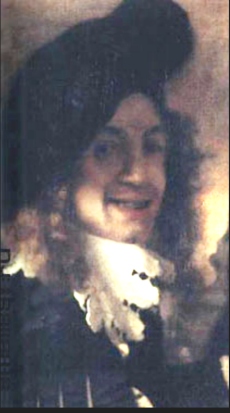 Картина «Офицер и смеющаяся девушка» (1657) также соответствует включенным во время ее создания угловым дугам. Меркурий на Десценденте, говорит об актуальности общения с партнером, а полутораквадрат к Асценденту дирекционного Марса дает на первом плане картины образ солдата, с которыми беседует девушка, и образ которого связан именно Марсом.