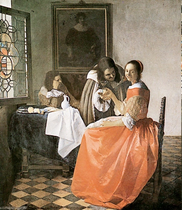 Соединение дирекционного Меркурия с Десцендентом приводит к стремлению осмыслить и понять себя и свои взаимоотношения, активизирует общение с внешним миром. И в точном соответствии с этой дугой Вермеер создает свои первые картины, и посвящены они именно общению с партнером один на один, тет-а-тет, стремлению к осмыслению и пониманию своих взаимоотношений и, посредством отражения в них, к пониманию самого себя.